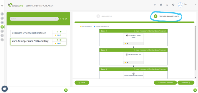 1. Legen Sie im Modul "Seminar Vorlagen" Ihre Vor-Ort Seminare an.