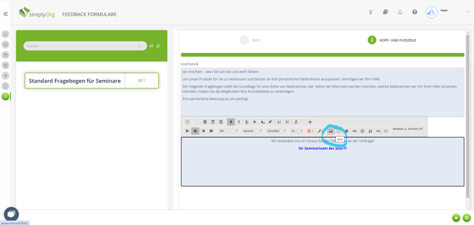 Die Kopf- und Fußzeile von Feedback Formularen ist sehr individuell anpassbar (Schriftart, Schriftgröße, Bilder, etc.). Gehen Sie dazu folgedermaßen vor: