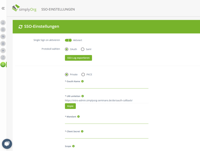 Einrichten der SSO-Einstellung im simplyOrg Backend