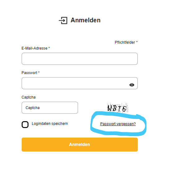- Der Nutzer klickt auf der Anmeldeseite den "Passwort vergessen" Button