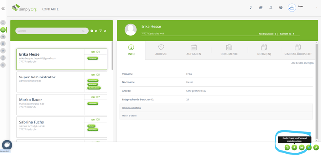 - Backendnutzer: Kontakte, die Administrationsrechte im simplyOrg Backend haben