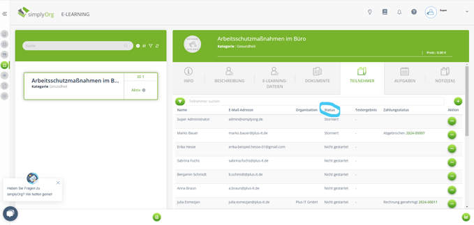In der Teilnehmeransicht im Modul E-Learnings verändert sich der Status nicht entsprechend.