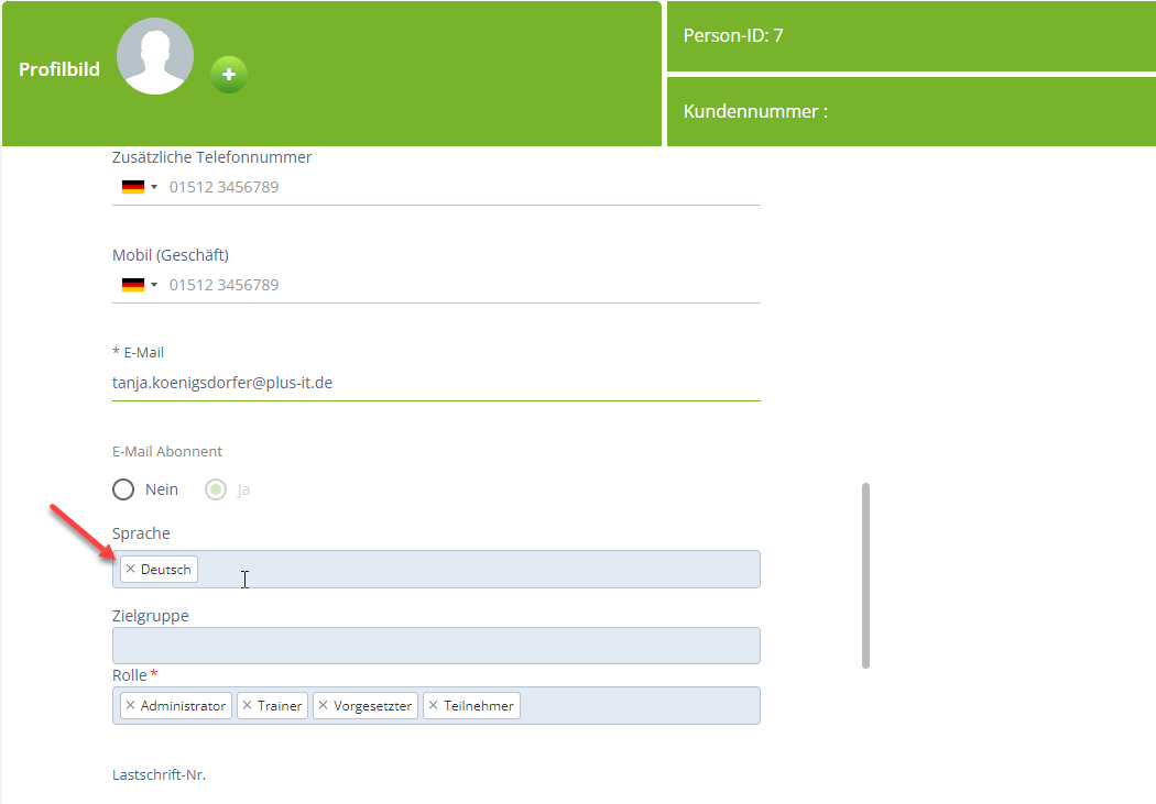 Es empfiehlt sich somit immer, die Sprache bei dem jeweiligen Kontakt zu hinterlegen.