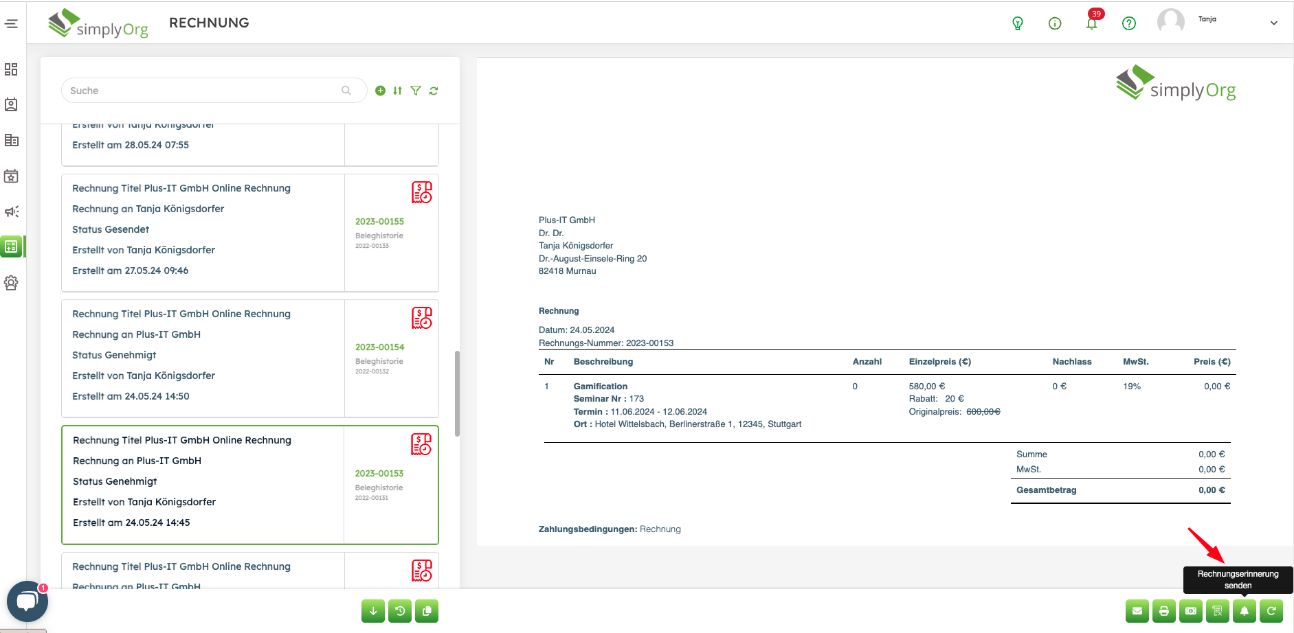 Außerdem muss sich die Rechnung im Status „Gesendet“ befinden.