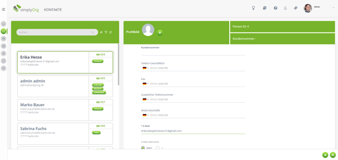 SimplyOrg zieht für die Erstellung von Teilnehmerlisten aus dem Kontaktmodul die Telefonnummer aus dem Feld "Telefonnummer geschäftlich". Wird die Telefonnummer in einem anderen Feld eingetragen, so erscheint diese nicht auf der Teilnehmerliste.