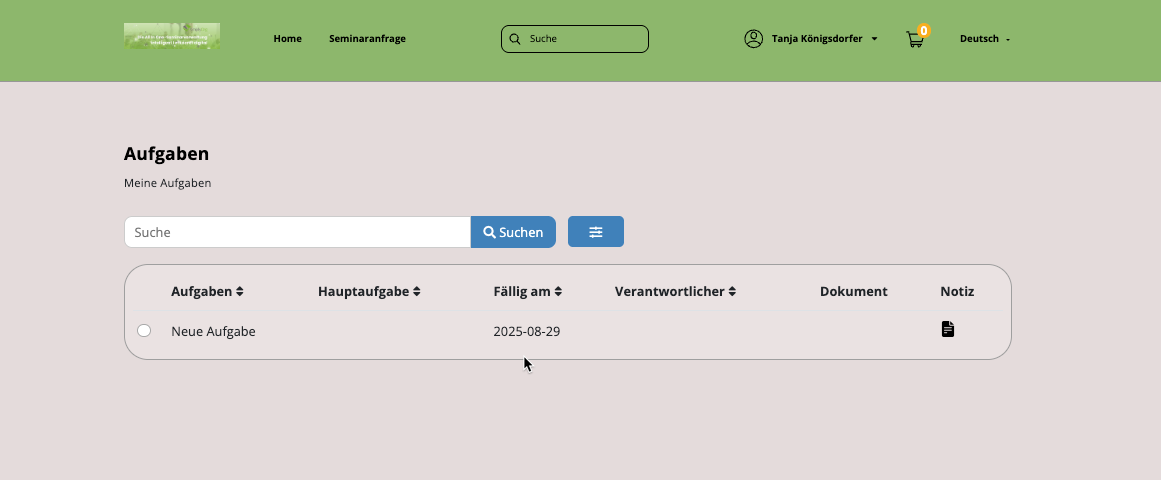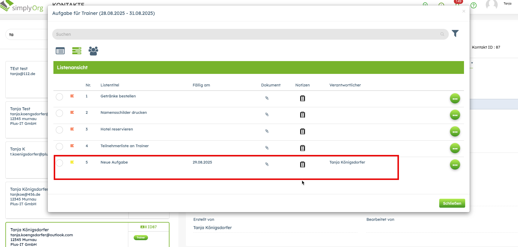 Damit ein Trainer im Buchungs- bzw. Trainerportal eine Aufgabe sieht, muss diese Aufgabe mit einem Checklisteneintrag verknüpft sein. Der Checklisteneintrag selbst wird anschließend dem gewünschten Trainer zugewiesen.