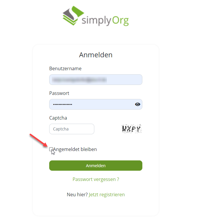 Bei der Verwendung der “Angemeldet bleiben” Checkbox auf der Login Seite des Online Portals, bleibt ein Benutzer automatisch 24h im Online Portal eingeloggt