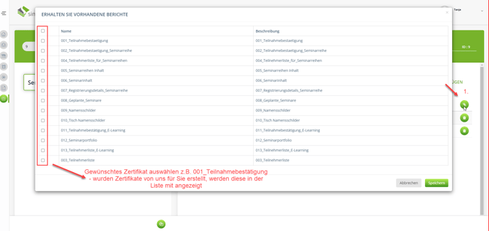 Wurden die Zertifikate von uns für Sie erstellt (Keine Google Docs), so sind folgende Schritte nötig, damit das korrekte Zertifikat pro Seminar versendet wird: