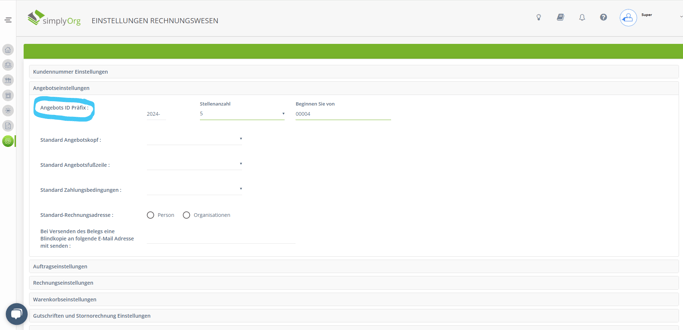 Wo kann man die Einstellungen für Angebote abändern, z.B. Präfix?
