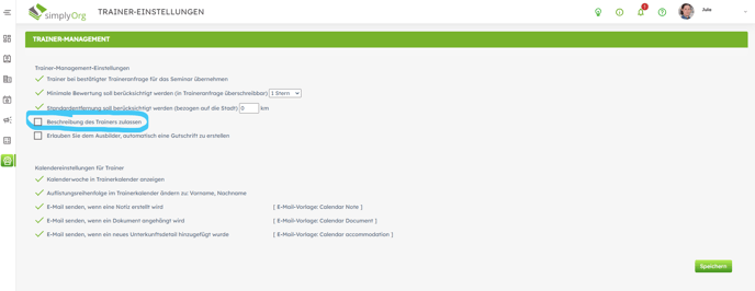 - Administration -> Trainereinstellungen -> Beschreibung des Trainers zulassen