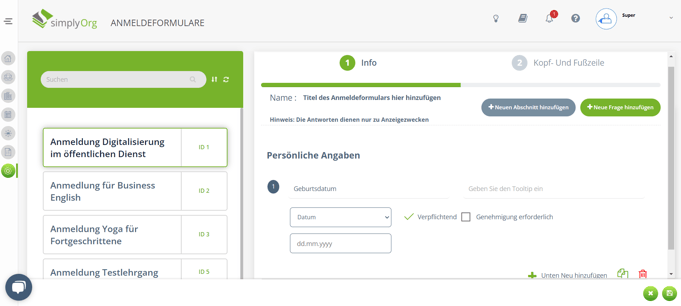 1. Erstellen eines Anmeldeformulars, indem die Abfrage des Geburtsdatums bei der Registrierung zu einem Seminar ein Pflichtfeld ist.