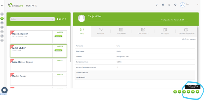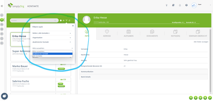 Den deaktivierten Kontakt können Sie wieder entsperren, indem im Kontaktmodul den Filter auf "deaktivierte Kontakte" setzen und diesen wiederherstellen.