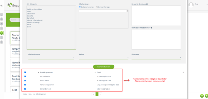 Nur aktive E-Mail-Abonnenten werden in den Marketinglisten berücksichtigt und angezeigt.