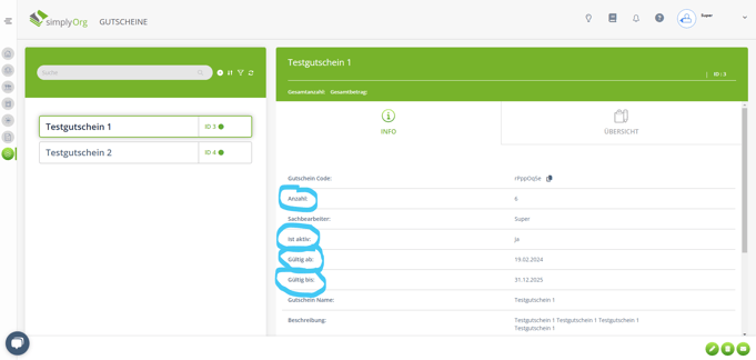 Funktionsweise des Gutschein Codes im simplyOrg Backend und Buchungsportal