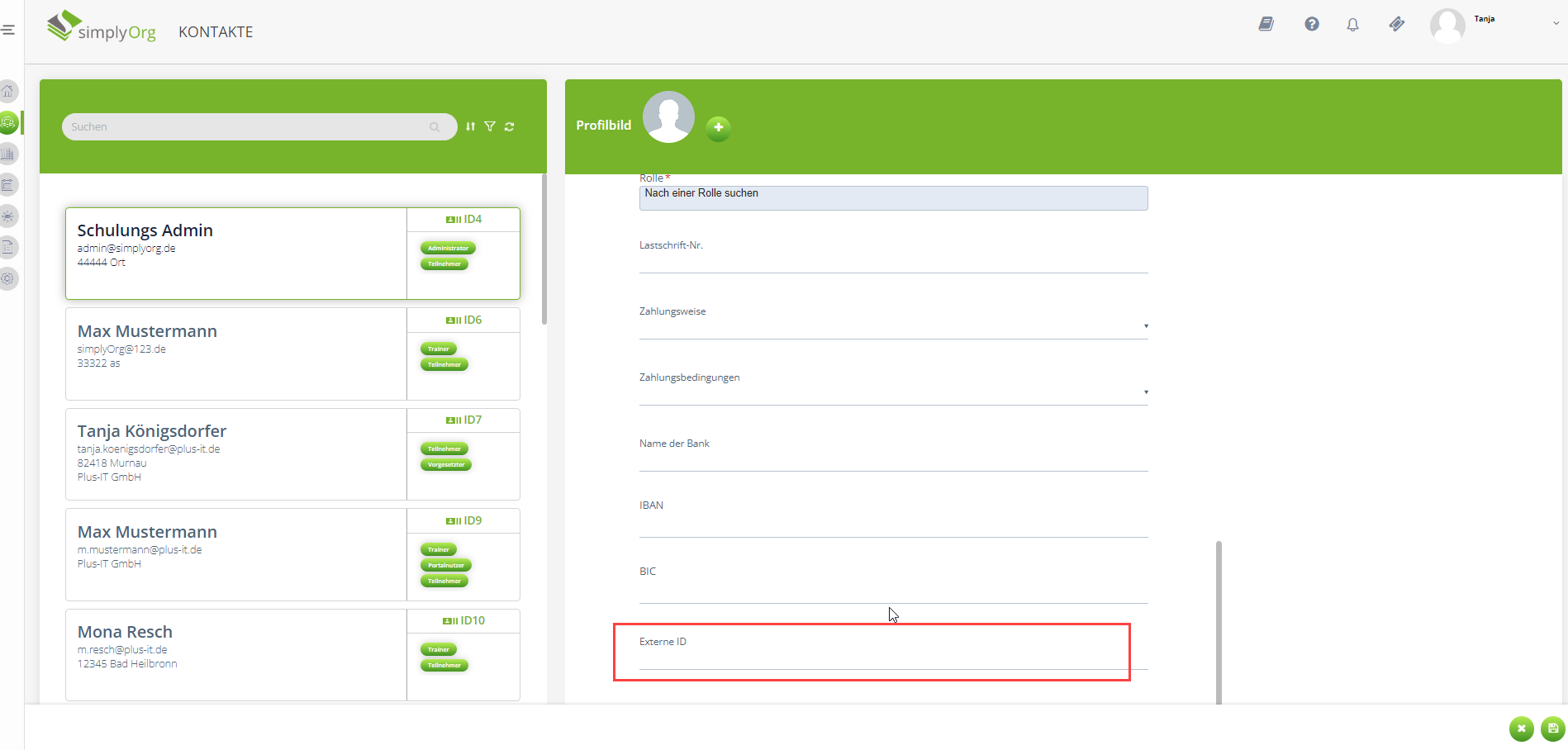Das Feld "Externe ID" ist nicht für alle Benutzer einsehbar
