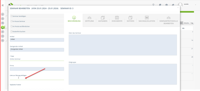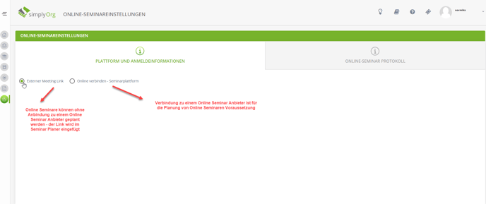 Fall 1: Anbindung zu einem Online Seminar Anbieter ist gewünscht: