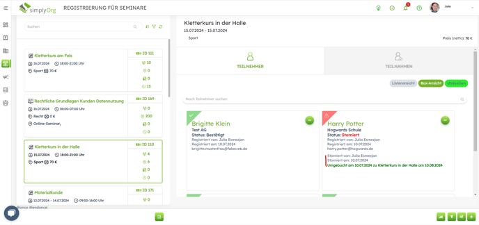 Fehlerhafte Darstellung des Teilnehmer Status im Modul Seminar Registrierung nach mehrfacher Umbuchung