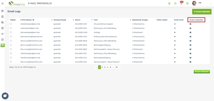 Was jedoch als versendet gilt sind sogenannte Signup E-Mails, das sind Anmelde-E-Mails, Passwort-vergessen-Mails oder Newsletter-E-Mails, da diese vom Portal aus im Backend landen. Rechnungen, die aus dem Backend heraus versendet werden sollen, werden nicht versendet es sei denn man klickt auf "Erneut senden".