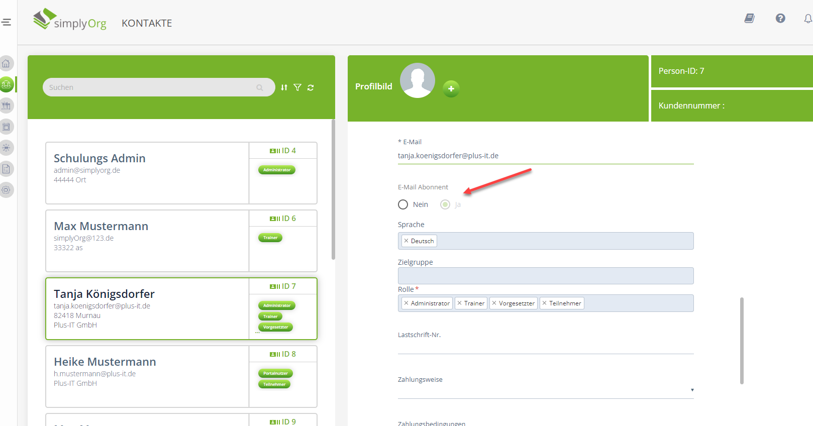Warum werden in der Marketingliste nicht alle Kontakte aus simplyOrg gelistet?