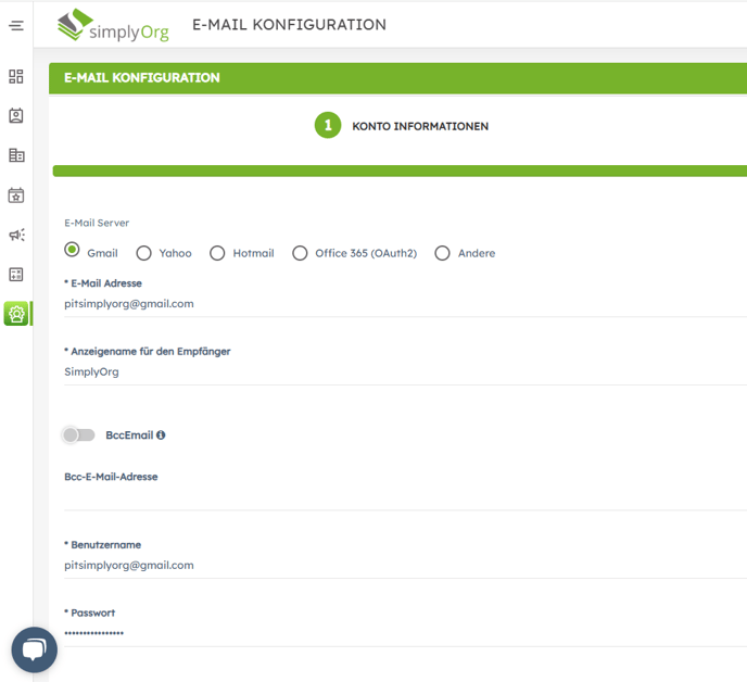 Einstellungen für E-Mails aus dem simplyOrg Backend