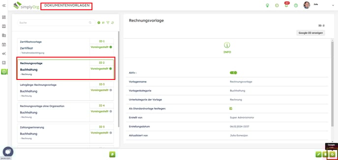2. Klicken Sie auf "Dokumentenvorlagen".