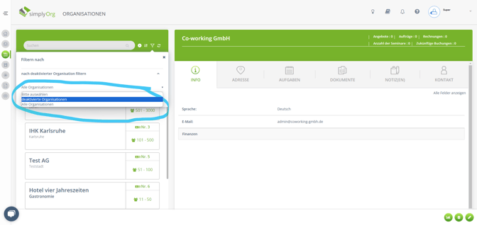 Weiterhin auffindbar im simplyOrg Backend unter deaktivierte Kontakte/Organisationen (noch in der Datenbank vorhanden):