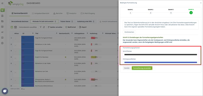4. Wählen Sie eine Schrift-/Hintergrundfarbe wenn Sie sich für die Zeile im ersten Schritt entschieden haben.