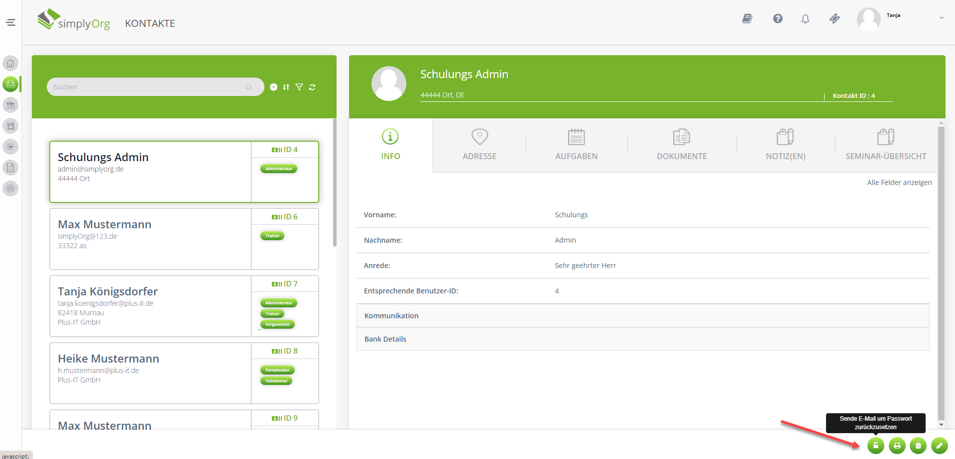 Neues Passwort für das Online Portal an Teilnehmer senden