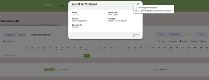 2. Gewünschtes Seminar im Kalender mit linker Maustaste auswählen