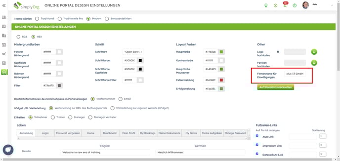 2. Klicken Sie auf "Online Portal Design Einstellungen".